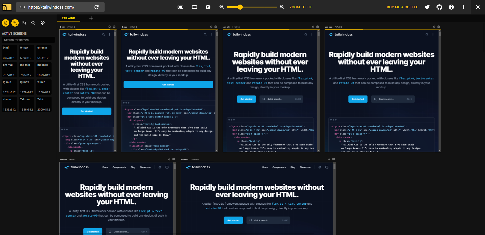 Below is a JSON file which can be imported into the Responsive Viewer browser containing only the screens for the Tailwind breakpoints.